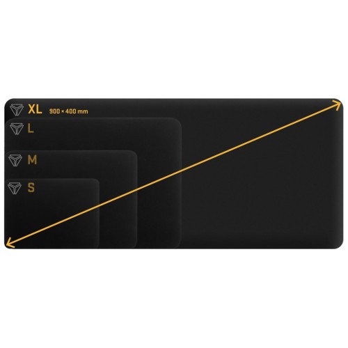 Ця модель має розміри 900 x 400 x 4 мм, що забезпечує достатньо простору для розміщення як миші, так і клавіатури, дозволяючи виконувати швидкі рухи без обмежень, а чорний колір з гладкою поверхнею додає естетики будь-якому ігровому сетапу. Поверхня з мікротканини оптимізована для оптичних та лазерних сенсорів миші, забезпечуючи швидке та точне ковзання без опору, що ідеально для шутерів чи стратегій, де важлива миттєва реакція. Основа з натурального гумового шару з сильним зчепленням запобігає ковзанню килимка по столу, навіть під час інтенсивних рухів, а товщина 4 мм додає амортизації для комфорту зап'ястя.