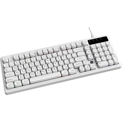 Клавіатура отримала повнорозмірний формат, зберігаючи при цьому зручність у користуванні. Завдяки цьому пристрою вам не доведеться жертвувати жодною з важливих функцій або місцем на робочому столі. Додатково, розкладка включає англійську та українську мови, що робить її універсальною для різних користувачів.