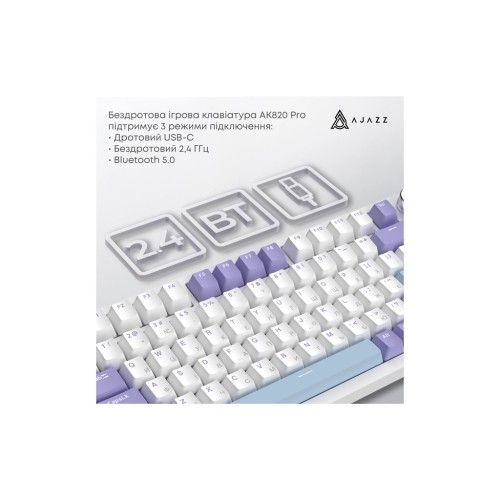 Клавіатура Ajazz AK820 Pro Gift Switch Purple RGB USB/Wireless/Bluetooth UA Purple (AK820PRO-G-PWB)