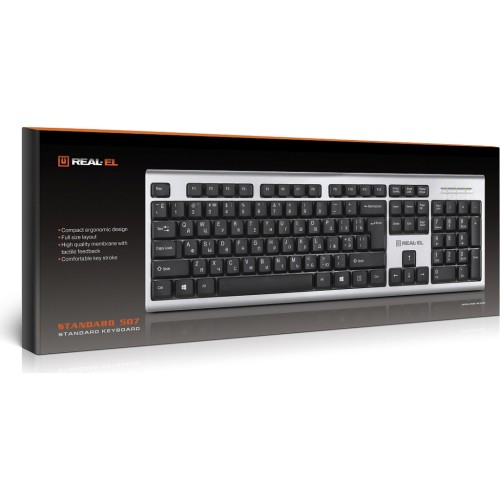 Ергономічна конструкція, стандартний набір клавіш, USB-інтерфейс, високоякісна мембрана – особливості клавіатури REAL-EL Standard 507.