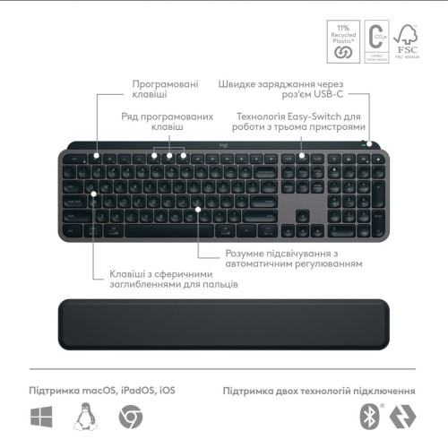 Комплект Logitech MX Keys S Plus Palmrest Wireless UA Graphite (920-011614)