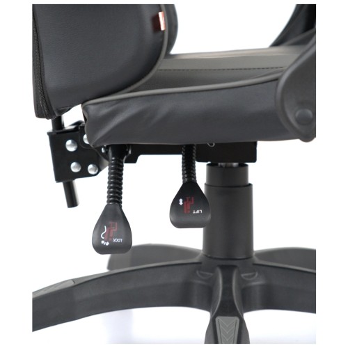 Дизайн. Модель відрізняється спортивним та динамічним дизайном, що гармонійно впишеться в інтер'єр молодіжної кімнати. Контрастне поєднання кольорів, характерне для геймерських крісел, надає йому сучасності та привабливості. Ергономічна форма спинки з бічною підтримкою та додаткові подушки для шиї та попереку підкреслюють орієнтованість крісла на комфорт користувача.