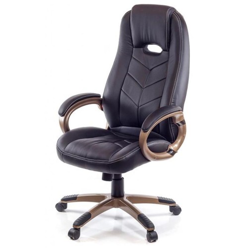 Крісло Брук має виразні деталі, за якими явно вгадується його приналежність до серії "геймерів" - це ергономічна посадка, великі деталі прошивки, декоративний отвір в спинці.