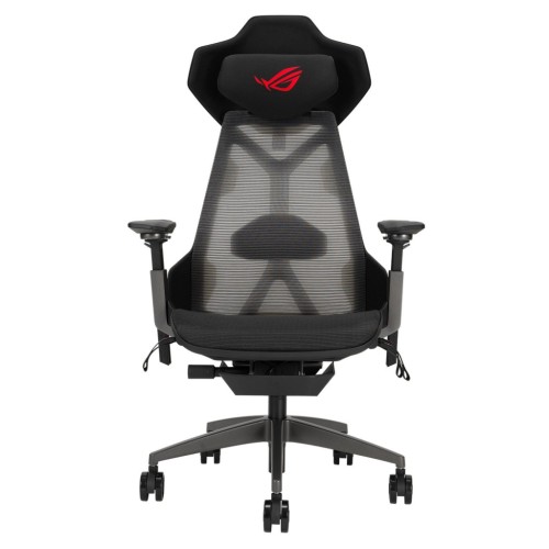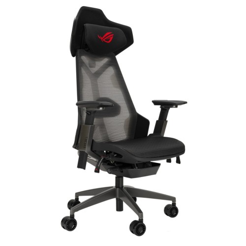 ROG Destrier Ergo Gaming Chair поєднує в собі міцну конструкцію та ергономічність. Крісло має алюмінієвий каркас, "дихаючу" сітчасту спинку та м’які підлокітники з поліуретановою піною – усе це створює неймовірний вигляд і дарує неперевершені відчуття. А дизайн, що нагадує екзоскелет стане чудовим футуристичним доповненням до будь-якого ігрового простору.
