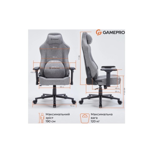 Крісло ігрове GamePro FGC750DG Size L Fabric Dark Gray (FGC750DG)