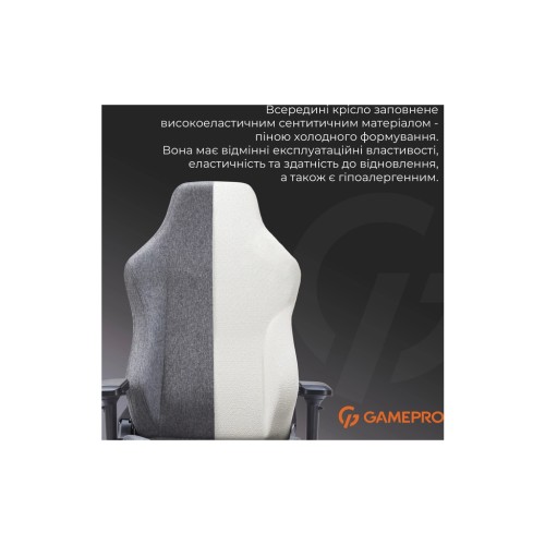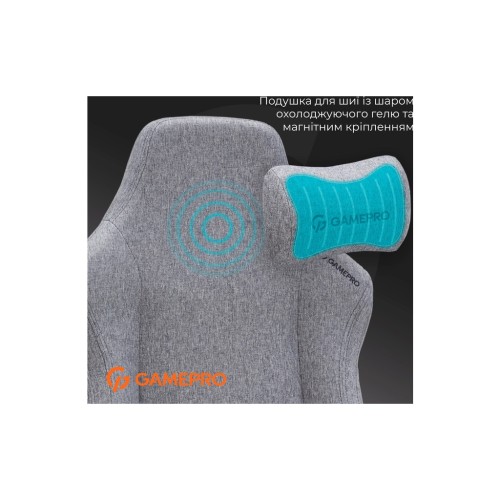 Окрему увагу приділено ергономіці. Спинка крісла має висоту 135 см і може нахилятися до 160°, що дозволяє знайти найзручніше положення як для роботи, так і для релаксу. Виготовлена з піни холодного формування, спинка і подушки крісла ефективно підтримують форму тіла та забезпечують відмінну підтримку. Подушка для шиї з охолоджуючим гелем та магнітним кріпленням доповнює комфорт, сприяючи відпочинку без зайвих зусиль.