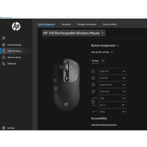 Мишка HP 700 Rechargeable Wireless/Bluetooth Black (AZ7B0AA)