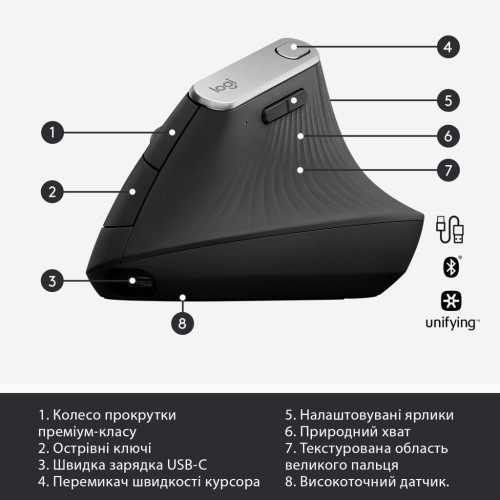 Таким чином, Logitech MX Vertical (910-005448) — це не просто мишка, а інвестиція у ваш комфорт і ефективність. Вона об'єднує найкращі технологічні досягнення і ергономіку, щоб забезпечити вам безперервну продуктивність і здоров'я ваших рук.
