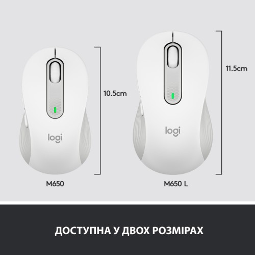 Вам подобається працювати з мишею Signature M650. Насолоджуйтеся зручним та природним положенням руки завдяки ергономічній формі, м'якій зоні під великим пальцем та гумовим боковим накладкам. Забудьте про незручності та зосередьтеся на своїх завданнях.