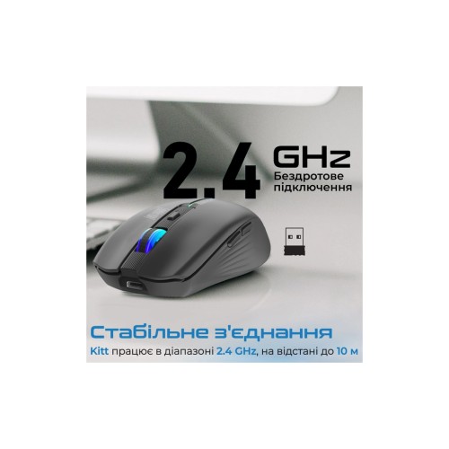 Kitt - невелика зручна мишка з RGB-підсвіткою від Promate. Чуйне управління та 3-х місячний запас автономності, роблять її очевидним вибором для щоденного використання.