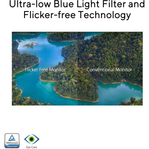 Технологія ASUS Eye Care – фільтрація синього світла та мінімізація мерехтіння, сертифіковані незалежною лабораторією TUV Rheinland.