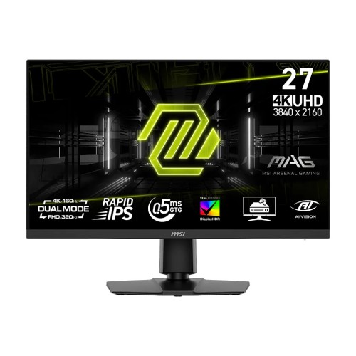 Монітор MSI MAG 272URDF-E16 — 27-дюймовий Rapid IPS-екран з роздільною здатністю 3840x2160, частотою 160 Гц, часом відгуку 0.5 мс, охопленням sRGB 131%, FreeSync, Pivot та HDR400. Подвійний режим (Dual Mode) для перемикання між UHD@160Hz та FHD@320Hz, підключення 2x HDMI, DP, 2x USB, аудіо. Чудово пасує для ігор з плавними кадрами та точними кольорами.