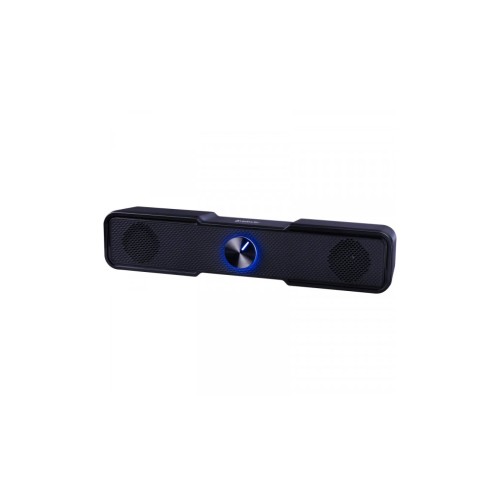 Модель оснащена підсвіченим регулятором гучності, зручно розташованим на передній панелі. Він також виконує функцію вимикача живлення, що додає зручності у щоденному користуванні. Живлення здійснюється через USB, тому не потрібно підключення до електромережі — достатньо USB-порту на комп’ютері. Аудіосигнал передається через стандартний аудіороз’єм, оскільки саундбар не має вбудованої звукової карти.