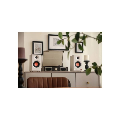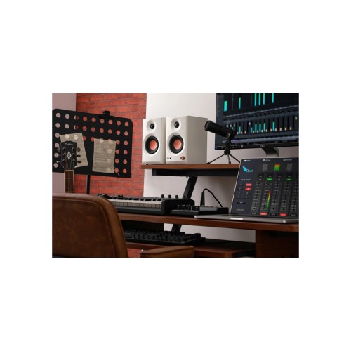 Високоякісні 3,5-дюймові НЧ/СЧ-динаміки та 1-дюймові твітери з шовковим куполом забезпечують сумарну потужність 2 × 18 Вт (RMS) та піковий рівень гучності до 92,5 дБ. Цього достатньо як для роботи з близької відстані, так і для озвучення середнього приміщення.