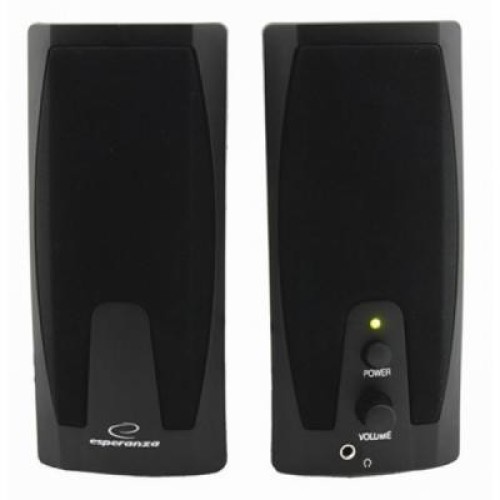 Вони добре працюють з усіма комп'ютерами з аудіо-виходами. Вони оснащені вбудованим регулятором гучності і вихід на навушники. Високоякісні матеріали, використовувані для їх виготовлення, служать для захисту від статичної електрики і електромагнітних завад. Основні особливості акустичної системи Esperanza Giocoso: формат акустики: стерео 2.0. Потужність: 2 х 3 Вт.