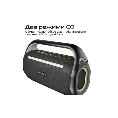 Однією з видатних характеристик HiFuture Musicbox 100 є наявність Bluetooth 5.0, що забезпечує стабільне та безперебійне з’єднання з вашими пристроями. Ви зможете насолоджуватися улюбленими треками, долаючи обмеження проводів. Цей пристрій підтримує функцію TWS (True Wireless Stereo), що дозволяє поєднати дві колонки в єдину стереосистему для ще більшого об'ємного звучання.