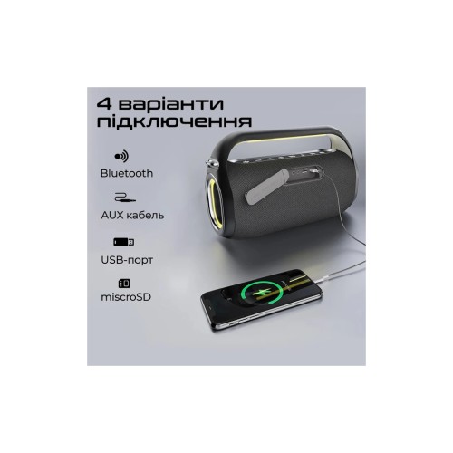 Для поціновувачів веселощів, цей гаджет обладнаний LED підсвічуванням, яке створює святкову атмосферу. Обирайте з безлічі режимів світіння, які підкреслять настрій будь-якої вечірки. Елегантний корпус з матового пластику, оздоблений плетеною тканиною, не тільки додає стилю, але й надійно захищає від подряпин, зберігаючи презентабельний вигляд.