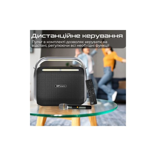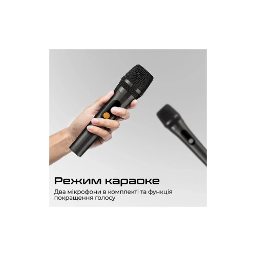 Ця акустична система вражає своїм функціоналом для проведення караоке-вечірок. Оснащена двома мікрофонами з покращенням голосу, вона приносить задоволення від особистого виконання улюблених хітів. Зручність у використанні забезпечується бездротовим пультом дистанційного керування та інтуїтивно зрозумілою панеллю на корпусі.