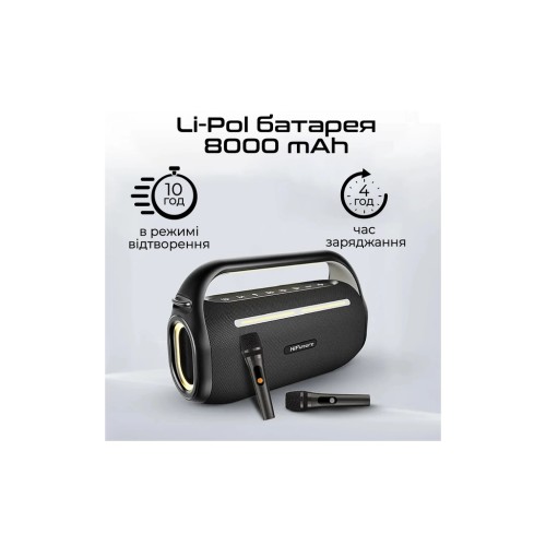 • Функціональність: Зручна конструкція з ручкою та комплектний ремінь з кишеньками під мікрофони дозволяють брати цю колонку з собою, куди б ти не прямував.