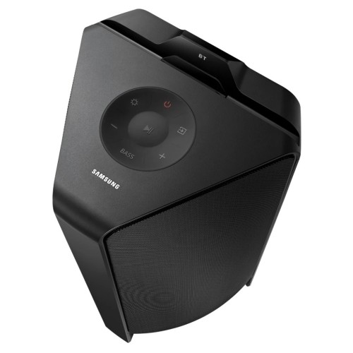 Samsung MX-T70 Black також вражає своєю функціональністю. Верхня панель системи водонепроникна, що захищає її від випадкових бризок. Підключення через Bluetooth дозволяє без зайвих зусиль стрімити музику з кількох пристроїв одночасно, надаючи можливість об'єднати кілька систем для створення справжнього аудіо-вибуху, від якого ваша вечірка тільки виграє.