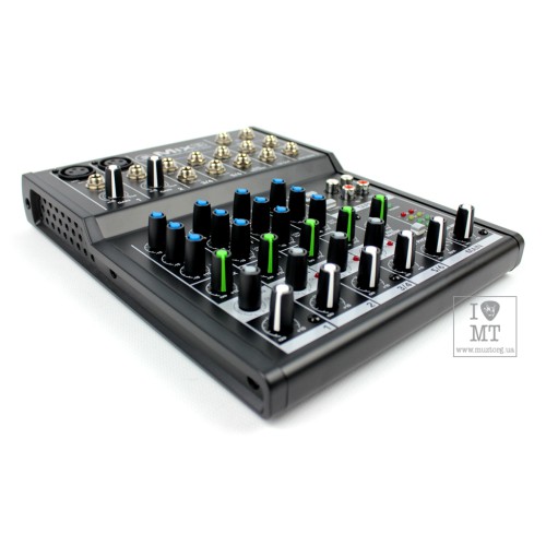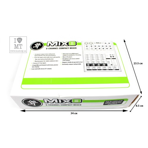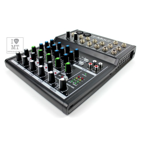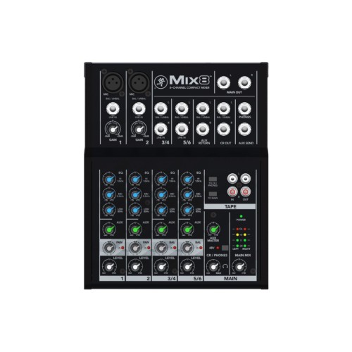 Mackie Mix8 призначений для користувачів з обмеженим бюджетом. Мікшер пропонує простий ряд функцій і чудово підійде для виконавців, авторів пісень і вуличних музикантів, а також невеликих репетицій і заходів. Цей 8-канальний компактний мікшер оснащений високоякісними компонентами та має міцний металевий корпус.