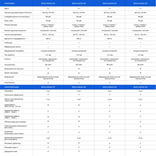 BOYA Magic — це не наступний мікрофон, а наступний крок у аудіотехнологіях. Він усуває компроміси між якістю, зручністю та вартістю, пропонуючи універсальне, інтелектуальне та компактне рішення для будь-якої творчої задачі. З BOYA Magic ваша ідея — це єдине, на чому вам потрібно концентруватися. Звук буде ідеальним.