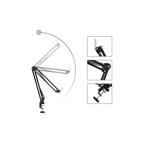 Регульована настільна підставка, яка кріпиться на стільниці, забезпечує надійну фіксацію мікрофона та дозволяє зменшити сторонні вібрації. Її можна використовувати і з іншими мікрофонами.