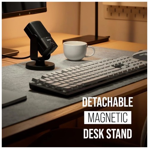 Rode NT-USB Mini - портативний настільний USB-мікрофон. Модель вирізняється чистим і насиченим звучанням, чудово підійде для геймерів, стримерів, блогерів, викладачів і музикантів. Пристрій дає змогу легко та швидко організувати робоче місце для запису аудіо. Мікрофон має електретний конденсаторний капсуль, який забезпечує високу чутливість, відкрите і багате звучання, а також частотний діапазон від 20 Гц до 20 кГц. Рівень максимального звукового тиску здатний досягати позначки 121 дБ. Підключення до ПК і живлення відбуваються за допомогою порту USB-C. Серед сумісних платформ є macOS 10.12 і Windows 10. За якісну конвертацію аналогового аудіосигналу в цифровий відповідає 24-бітний АЦ-перетворювач з частотою дискретизації 48 кГц. Для прямого моніторингу без затримки є вихід для навушників на роз'ємі 1/8'' Jack TRS і оснащений окремим регулятором гучності. Рівень вхідного сигналу налаштовується в налаштуваннях операційної системи. Мікрофон оснащений зручною та ефективною конструкцією з можливістю обертання на 360 градусів і закріплення на магнітному настільному тримачі, який поставляється в комплекті. Також до комплекту входить різьбовий адаптер і USB-кабель.