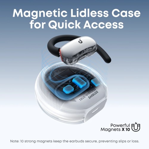 Елегантний, готовий до майбутнього дизайн: прозорий чохол V40i оснащений потужними магнітами, що запобігають випадковій втраті, і світловою панеллю, яка інформує вас про стан пристрою. Компактний, портативний і футуристичний — насолоджуйтесь музикою в стилі, де б ви не були.