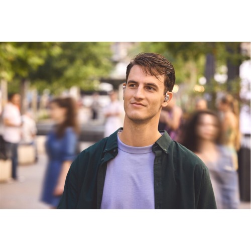 Для ще більшої зручності, навушники оснащені вбудованим мікрофоном і системою з 4 мікрофонів, які підтримуються алгоритмами на базі штучного інтелекту, що знижують шум довкілля та забезпечують кристально чисте передавання голосу. Датчик Voice Pickup Sensor додатково підвищує чіткість звуку, уловлюючи вібрації вашого голосу.