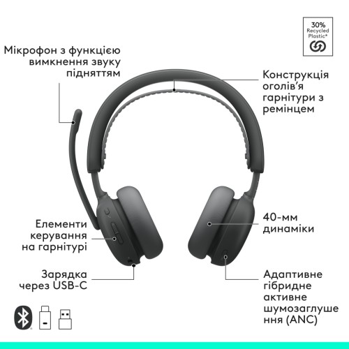 Навушники Logitech Zone Wireless 2 ES Busines Graphite (981-001498)