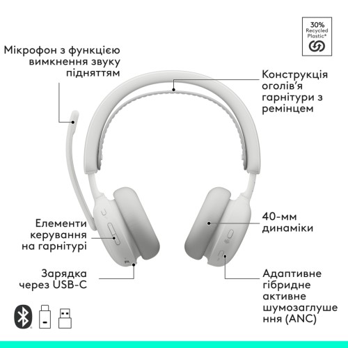 Навушники Logitech Zone Wireless 2 ES for Business Off-White (981-001520)