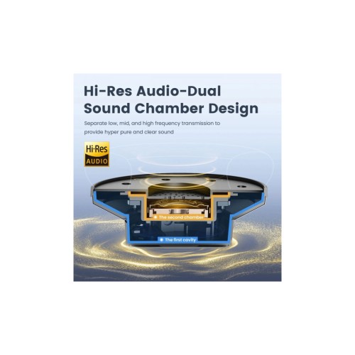 Динаміки з подвійною звуковою камерою відтворюють збалансований звук стандарту Hi-Res Audio з глибокими насиченими басами, чіткими середніми та кришталево чистими високими частотами без взаємних перекриттів.