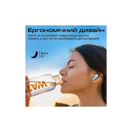 • Ергономічний дизайн: Легкі навушники анатомічно правильної форми. Вони зручно лежать у вусі та не викликають дискомфорту навіть після тривалого використання.
