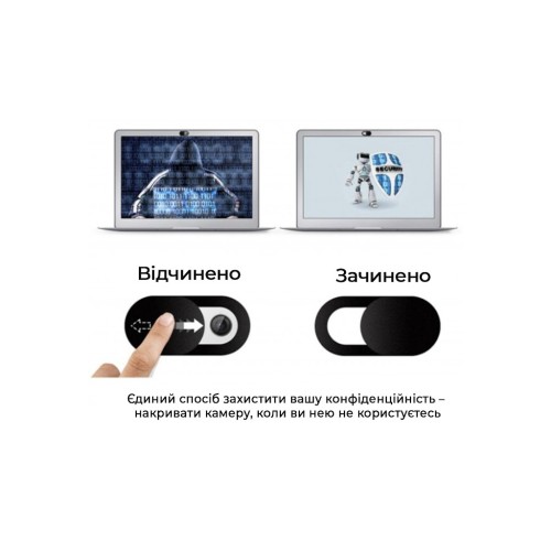 Заглушка дуже проста у використанні і майже непомітна після установки. Завдяки мінімальній товщині шторка не буде заважати закриття кришки ноутбука або чохла телефону.
