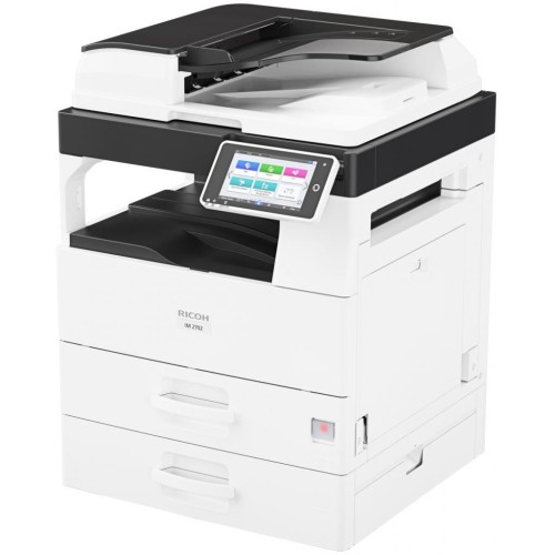 Ricoh IM 2702 - це багатофункціональний пристрій формату A3 з інтелектуальними функціями. Панель управління з кольоровим сенсорним екраном спрощує управління і підтримує інтеграцію з хмарою. На смарт-панелі управління розташований цілий набір інструментів для управління робочим процесом. Офлайн інтелектуальні додатки оптимізують тривалі процеси (наприклад, копіювання посвідчень особи). Користувачі можуть підключатися до МФУ з своїх смартфонів і планшетів для виконання сканування і друку. Крім того, завдяки інтеграції з хмарою вони можуть сканувати документи і вивантажувати їх в такі служби, як DropBox ™ і Sharepoint ™. IM 2702 є максимально універсальним і підтримує чорно-білий друк і копіювання, а також кольорове сканування. Функція факсу пропонується в якості опції. Реверсивний АПД забезпечує швидке сканування двосторонніх оригіналів і швидке копіювання багатосторінкових документів. Пристрій може оснащуватися трьома лотками і забезпечує друк на папері різного формату, а також друк на конвертах і наклейках. МФУ підтримує різні мови, включаючи російську, що спрощує локалізацію. Крім того, IM 2702 відрізняється простотою установки і забезпечує можливість самостійного обслуговування, гарантуючи надійну роботу.