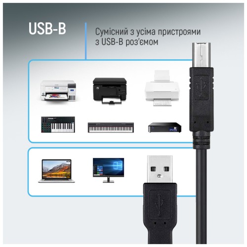 • Сумісний із усіма пристроями з роз'ємом USB-B.