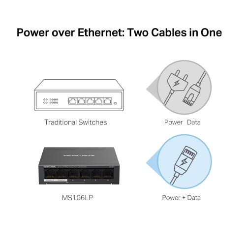 MS106LP підтримує автоматичне узгодження швидкості (10/100 Мбіт/с) та автоматичне визначення MDI/MDIX. Комутатор не вимагає додаткового налаштування, що дозволяє заощадити час та сили.