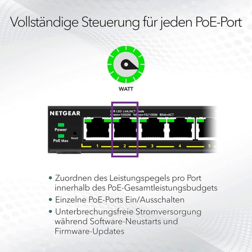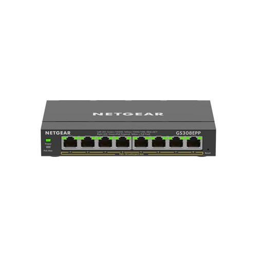 Інтелектуальний керований комутатор NETGEAR GS308EPP з 8 портами Gigabit Ethernet з підтримкою технології PoE+, надає прості в управлінні, основні мережеві функції за доступною ціною для малого та середнього бізнесу. GS308EPP пропонує загальний бюджет потужності 123 Вт для живлення пристроїв PoE, як-от телефони VoIP, IP-камери, точки бездротового доступу. У комутаторі реалізовано технології поділу трафіку (VLAN), якості обслуговування та пріоритету трафіку (QoS), динамічної багатоадресної розсилки (IGMP), перевірки стану кабелю та запобігання утворенню петель. GS308EPP також містить енергоефективний Ethernet (IEEE 802.3az) для максимальної економії енергії, а завдяки інтуїтивно зрозумілому графічному інтерфейсу він забезпечує просте, надійне і доступне під'єднання за технологією Plug and Play.
