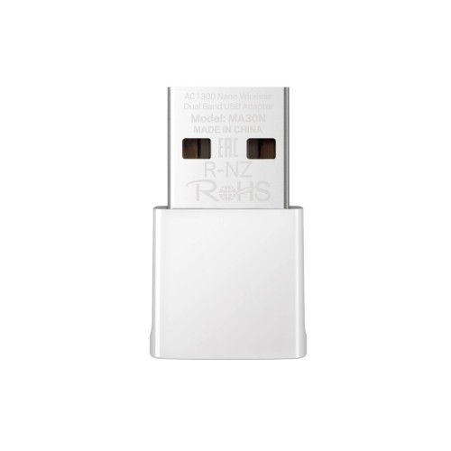 Wi-Fi адаптер MERCUSYS MA30N AC1300 – компактний дводіапазонний USB-адаптер (Nano) зі швидкістю до 867 Мбіт/с на 5 ГГц та 400 Мбіт/с на 2,4 ГГц. Оснащений внутрішньою антеною, підтримує WPA3 для підвищеної безпеки. Сумісний із Windows 10/11, підключення через USB 2.0.