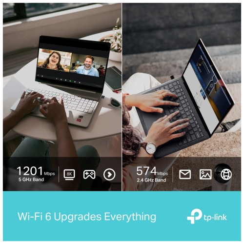 Компактний nano-адаптер Wi-Fi 6 забезпечує швидкість до 1201 Мбіт/с (5 ГГц) і 574 Мбіт/с (2,4 ГГц), долаючи гігабітний бар'єр. Підтримка MU-MIMO та OFDMA мінімізує затримки в іграх і при стрімінгу. Завдяки підтримці WPA3 забезпечується новітній рівень безпеки.