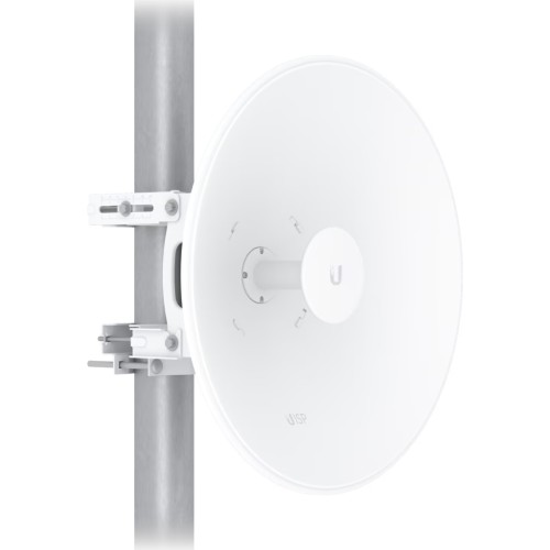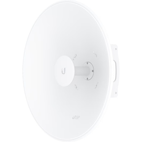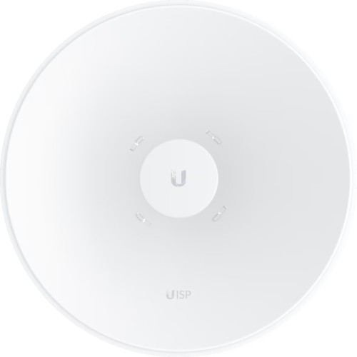 Ubiquiti UISP Dish (UISP-Dish) - антена з високим коефіцієнтом посилення, призначена для побудови мостів у режимі Точка-Точка та забезпечує достатнє покриття за рахунок широкого діапазону робочих частот (5,15-6,875 ГГц). Завдяки хвилеводному адаптеру, що йде в комплекті, пристрій легко підключається до airFiber 5X HD або Rocket 5AC PRISM Gen2 для зручного і надійного з'єднання. З боків антени також є засувки для безпечного приєднання радіопристрою.