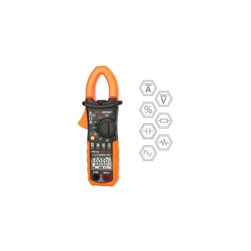 ОСОБЛИВОСТІ PM2108• Функції вимірювань: постійний/змінний струм і напруга, ємність, опір, частота, коеф. заповнення імпульсів.• Діаметр захоплення кліщів - 26 мм• Функція утримання максимальних, мінімальних і поточних результатів вимірювання• Вимірювання пускових струмів• Функція продзвонювання ланцюга, тестування діодів• Відповідність стандартам безпеки: CE CAT.III600V RoHSКорпус пристрою виготовлений з зміцненого пластику з прогумованою поверхнею для кращої фіксації в руці і захисту електронних компонентів від зовнішнього механічного впливу. Харчування струмових кліщів від 3-х батарей типорозміру ААА.
