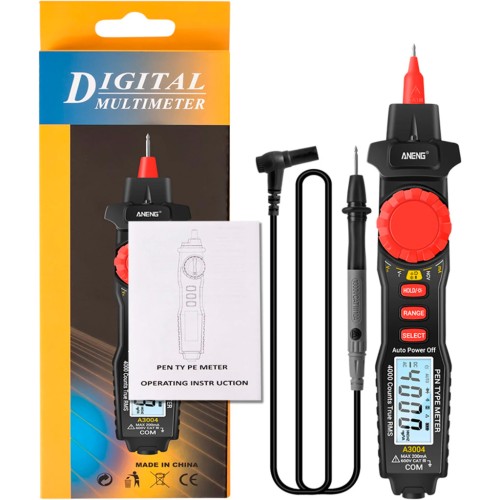 Компактний цифровий мультиметр Aneng A3004 - це висококласний, портативний мультиметр, який дозволяє вимірювати постійну та змінну напругу, силу струму, опір та ємність. Також має функцію продзвонювання ланцюгів, тесту напівпровідників та безконтактний детектор напруги.