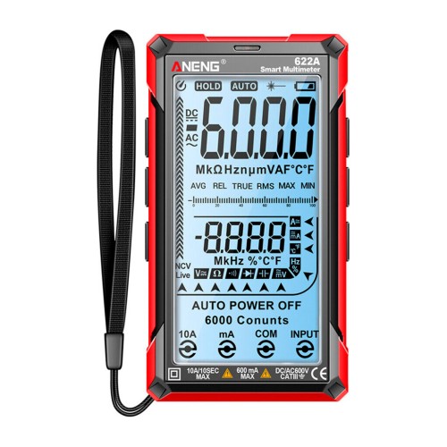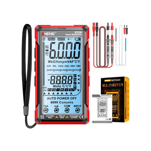 Мультиметр Aneng AN-622A - це високоточний пристрій, необхідний кожному професіоналу або любителю в галузі електротехніки та електроніки. Він дозволяє вимірювати напругу (V), силу струму (A), опір (R), ємність (C), температуру (T) та частоту (F), що робить його ідеальним інструментом для вирішення найрізноманітніших завдань, від перевірки електропроводки та діагностики електроніки до навчання та наукових експериментів.