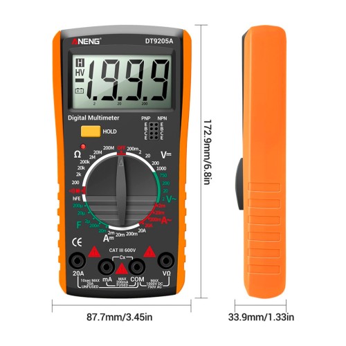 Цифровий мультиметр ANENG DT9205A, V, A, R, C, T, функція hFE (DT9205A)