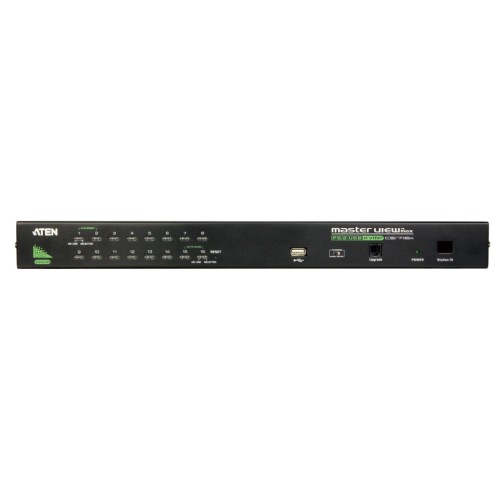 KVM-перемикач ATEN 16-портовий PS/2 USB VGA з роз'ємом гірляндного під'єднання й підтримкою USB-периферії — пристрій керування декількома комп'ютерами з одної PS/2- або USB-консолі (клавіатура, монітор і миша). Один такий перемикач може керувати 16 комп'ютерами. Використовуючи гірляндне під'єднання, можна додати 31 додатковий перемикач, що дає змогу керувати 512 комп'ютерами з однієї консолі KVM (клавіатура, монітор і миша). Крім того, для кожного комп'ютера на передній панелі є порт USB, що дає змогу по черзі використовувати будь-які під'єднані до нього периферійні пристрої.
