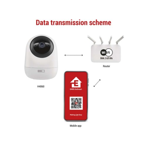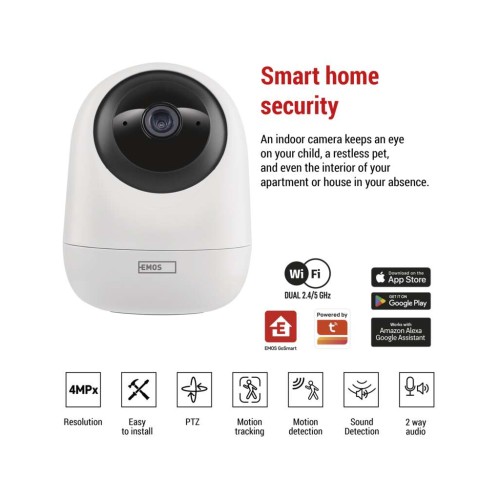 Розумна камера з двома діапазонами - Wi-Fi 2.4 та 5 ГГцПоворотна камера IP-220W забезпечить безпеку вашого дому чи офісу. Вона оснащена роздільною здатністю 4 Мп та має інтелектуальні функції, такі як PTZ, виявлення руху, виявлення звуку, має вбудований динамік та мікрофон. Завдяки сповіщенням на ваш мобільний пристрій ви зможете відстежувати, що відбувається вдома, будь-коли та будь-де, а відеозапис зберігається на SD-карті або в хмарі. Функція DUALBAND - Wi-Fi 2.4 та 5 ГГц гарантує, що у вас більше не буде проблем із підключенням до мережі Wi-Fi. Елегантний дизайн, сумісний розмір та гнучке розміщення - все це гарантує, що камера впишеться в будь-який інтер'єр.• DUALBAND – сумісний з Wi-Fi 2.4 та 5 ГГц• роздільна здатність камери 4 Мп для чудової чіткості зображення• функція PTZ (панорамування та масштабування за двома осями) – панорамування та масштабування камери за потреби для повного охоплення області спостереження• нічний режим та обмеження області перегляду• камеру можна підвісити або встановити• живлення від 2-метрового кабелю USB-C• легке встановлення з повним комплектом аксесуарів• можливість автоматизації з іншими розумними пристроями• сумісний з EMOS GoSmart, TUYA, LIDL, SmartLife, відкритою системою• мобільний додаток для EMOS GoSmart повністю безкоштовний та доступний більш ніж 60 мовами• керується голосовими помічниками Google Assistant та Amazon AlexaСкористайтеся перевагами всебічного відстеження для повного покриття, гнучкого відстеження та керування безпекою в режимі реального часу, щоб не пропустити жодної миші.