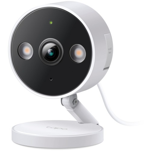TP-Link Tapo C120 — внутрішня/зовнішня Wi-Fi-камера відеоспостереження 2K QHD (2560×1440) з захистом IP66, кольоровим нічним баченням до 30 м та вбудованими подвійними прожекторами. Розумне виявлення ШІ (люди, тварини, транспорт, плач дитини), двосторонній звук, налаштовувана світлозвукова сигналізація, локальне зберігання на microSD до 512 ГБ або хмарне Tapo Care. Сумісність з Alexa та Google Home, магнітна основа для простого монтажу, 3-метровий кабель. Надійна камера 2025 року для цілодобового захисту будинку всередині та зовні.