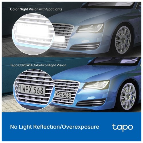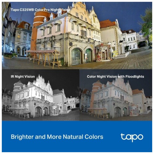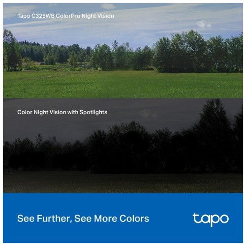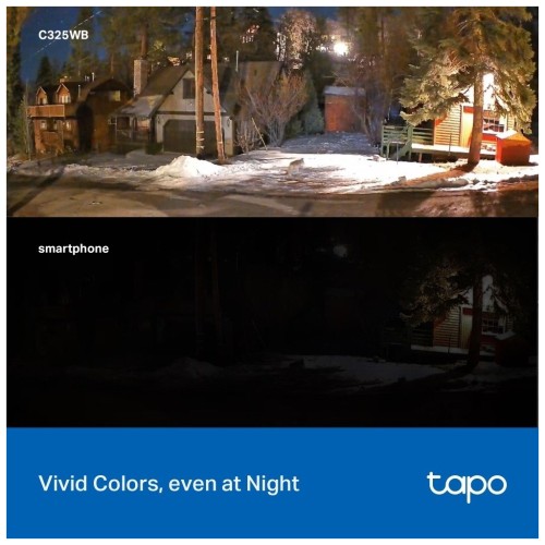 Камера Tapo C325WB передає яскраві кольори навіть в умовах наднизької освітленості, в результаті чого отримуються яскраві та чіткі зображення навіть у непроглядній темряві.На відміну від інших кольорових камер нічного бачення, які використовують прожектори, Tapo C325WB використовує технологію ColorPro у поєднанні з неймовірною роздільною здатністю 2688x1520, що забезпечує приголомшливі результати в умовах низької освітленості. Насолоджуйтесь більш природними кольорами, яскравішими зображеннями та чіткішими знімками навіть в умовах низької освітленості.